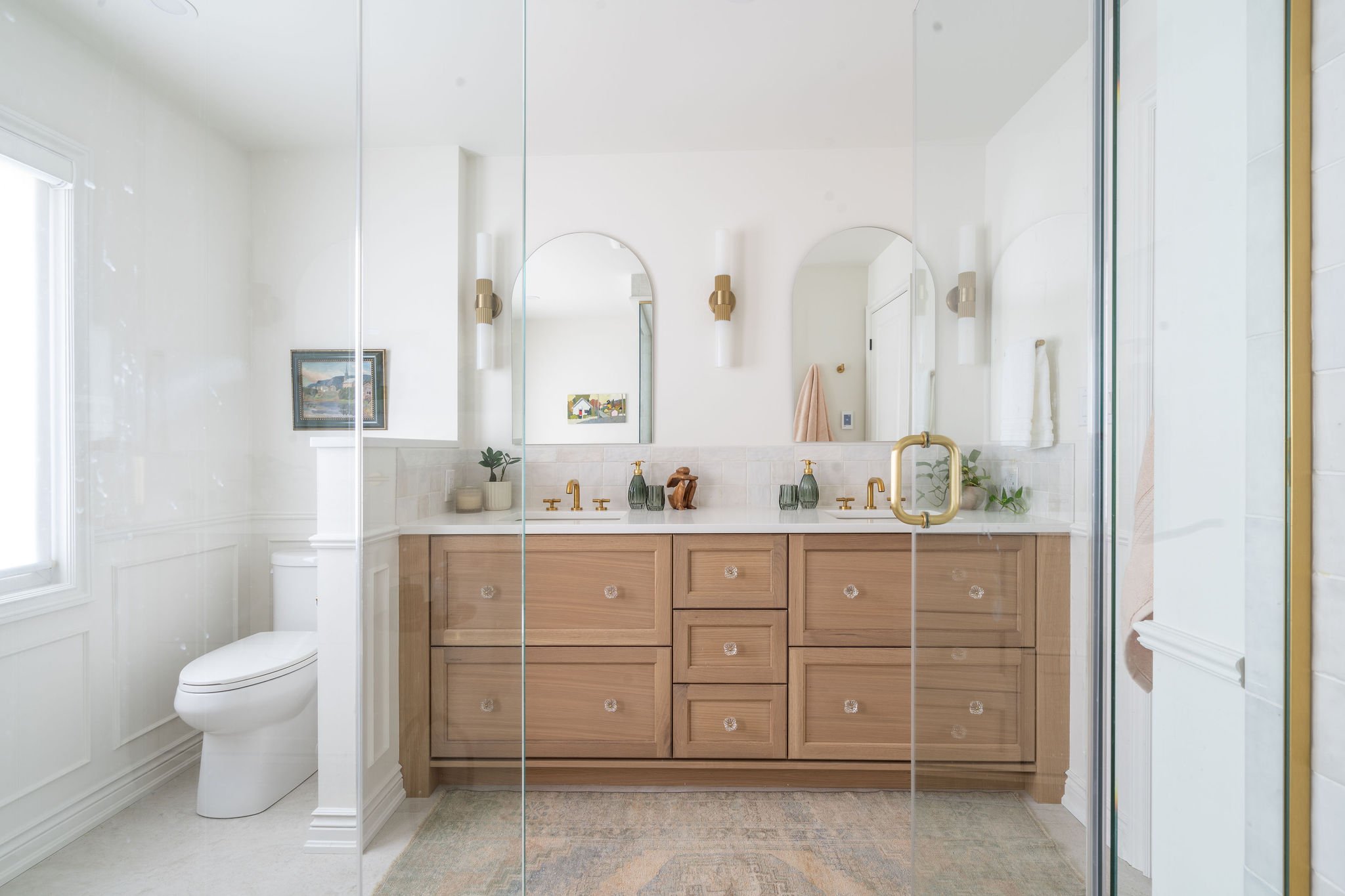 It could also mean thinking about family, including picking finishes that can withstand the chaos of kids who never quite remember to turn on the fan (mine are guilty as charged). I now wish our fan turned on automatically with the light in both our bathrooms! Or consider storage that keeps clutter hidden and routines seamless: medicine cabinets with accessible mirrors, lots of drawers in the vanity, and heated flooring for those cold early mornings. There might be some sticker shock at first, but it’s nothing compared to the cost and frustration of tearing out a shower or vanity years later because of something that could have been anticipated from the start. I can’t tell you how many bathrooms we’ve redone for that very reason. If only a little truth-telling had happened early on.